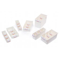 - Los cajetines sin tope de retención para utilizarse en los casetes de transporte para el intercambio de medicación unidosis.