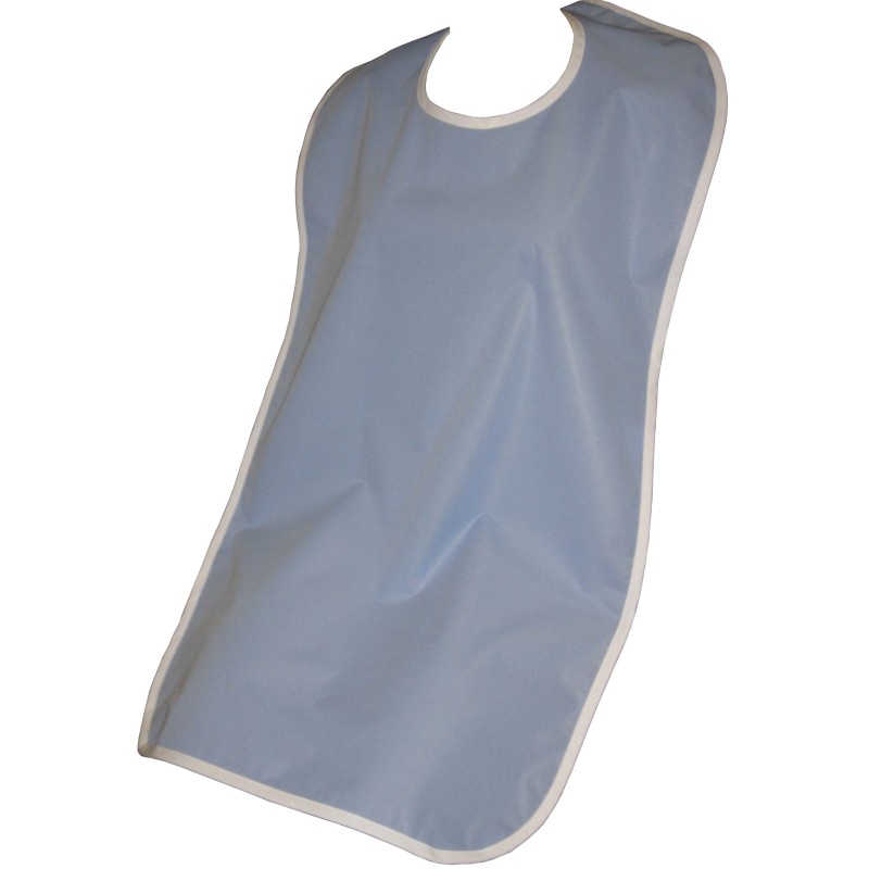Babero reusable compuesto por una capa de un suave tejido de poliéster elástico sin rizo que evita acumulación de restos.