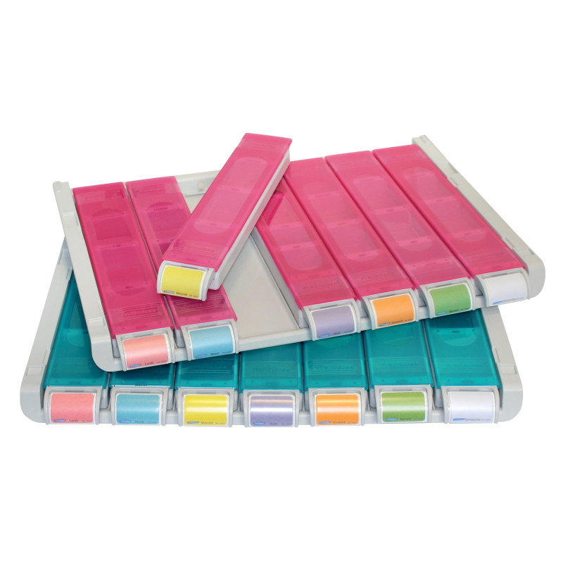 Bandeja de 600 x 400 con 7 dispensadores diarios equipados con 4 cursores y 1 tapa