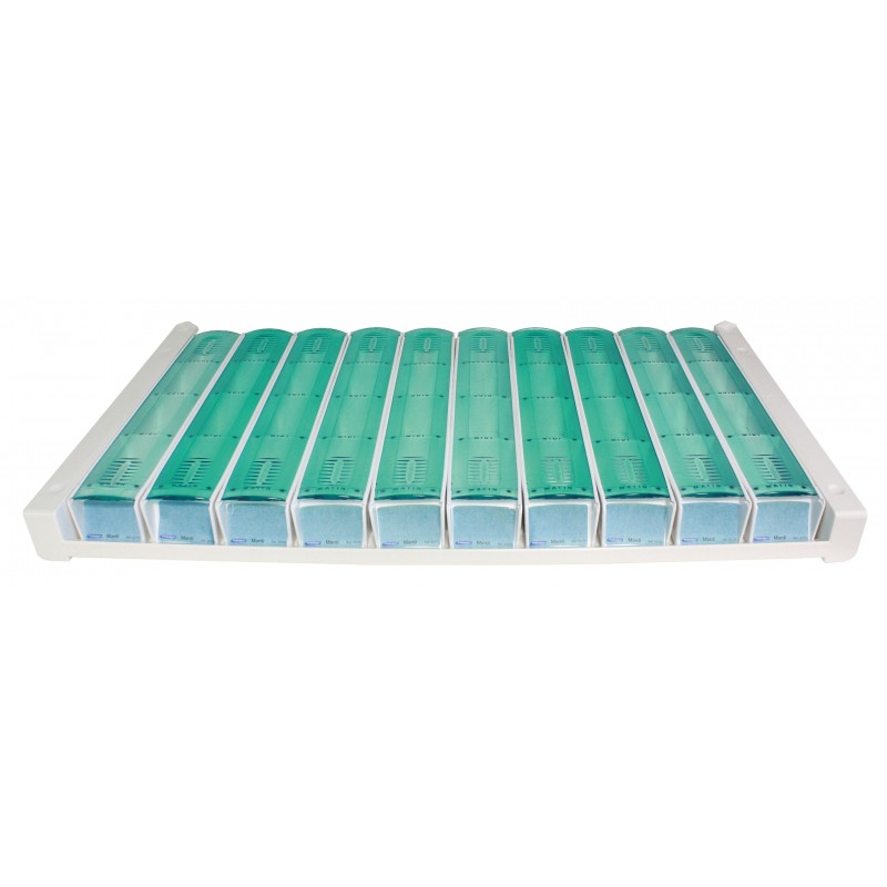 Bandeja 600 x 400 con 10 pastilleros diarios con 4 separadores y tapa azul.