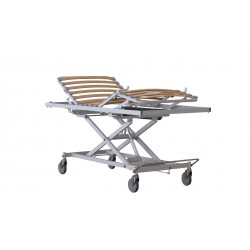 Elevación de la cama mediante carro eléctrico con sistema de elevación en tijera.