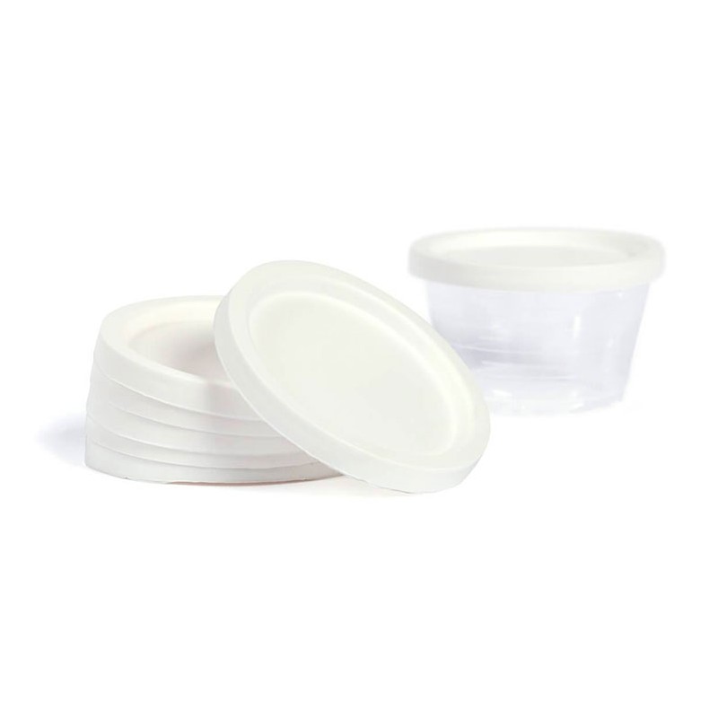 Las tapas de los vasitos de medicación para el triturador Severo protegen el medicamento de la contaminación y evitan el derrame durante el reparto.